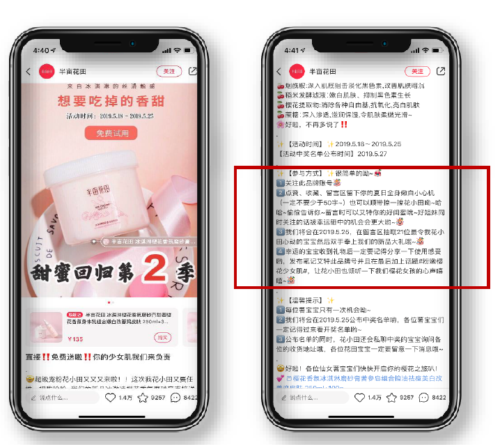 例如半亩花田通过免单的活动回馈购买过品牌产品的忠实用户,增加用户对品牌的好感度
