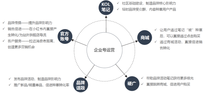 小红书企业号集展示权益,营销转化,内容运营,粉丝互动,数据洞察几大功能于一身,为企业服务,帮企业赚到钱的功能号。