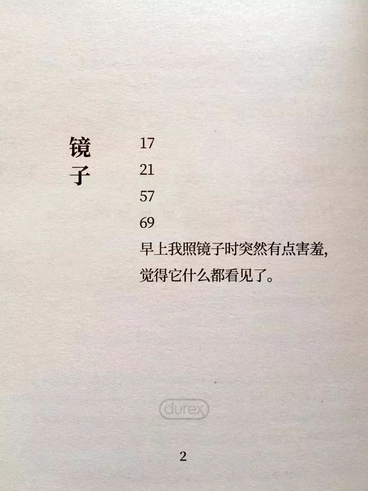 比如春日诗集中的镜子看见了赤裸的自己,椅子到了一地等等,都是人们脑海中或许存在的画面。