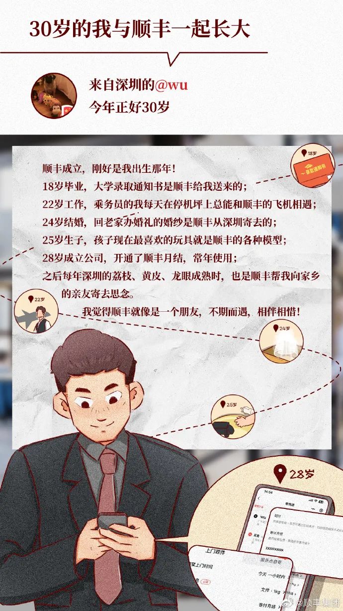 顺丰在30年来,与用户打交道的过程中,始终坚持与其进行深度的情感价值沟通,让用户感受到顺丰不只是一个冰冷的送快递品牌,而是一个用户生活更美好的陪伴者。