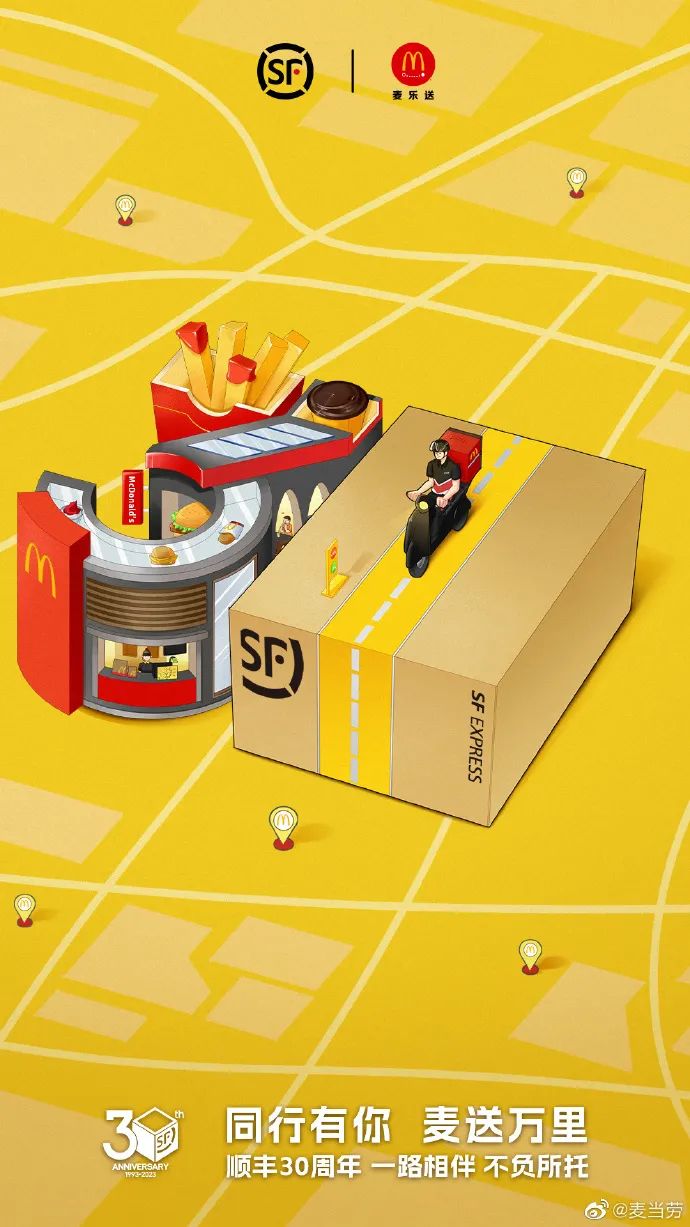 顺丰“人缘”很好,在30岁生日之际,各大“好友品牌”:招商银行、周大福、麦当劳、方太、舒肤佳、海信电视、唯品会...都赶来庆生,顺丰与每一位品牌积极回应,同时还准备了惊喜礼包,一时间,全网都是关于顺丰庆生的祝福。
