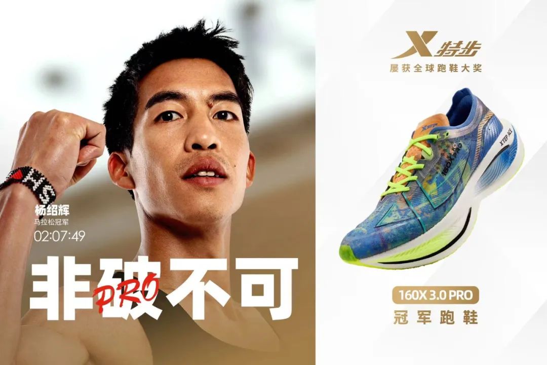 而冠军跑鞋「星辰大海」配色则为竞速跑者们送上了最美好的祝福,更是在无锡马拉松暨全国锦标赛上,穿着特步160X冠军跑鞋的何杰和杨绍辉,双双打破中国马拉松纪录,书写了中国马拉松新骄傲,也实现了中国跑鞋新突破!