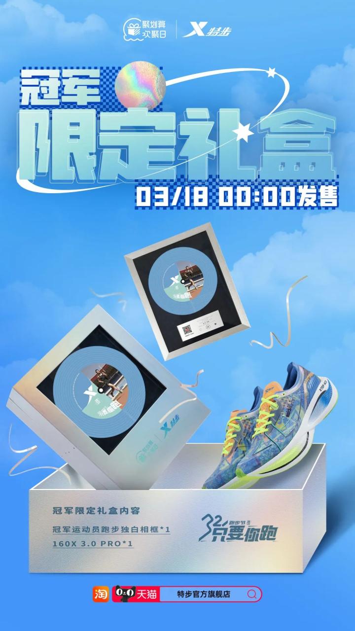 值得一提的是,特步还为粉丝们打造了限定款冠军礼盒,和冠军一起突破极限,跑个痛快!