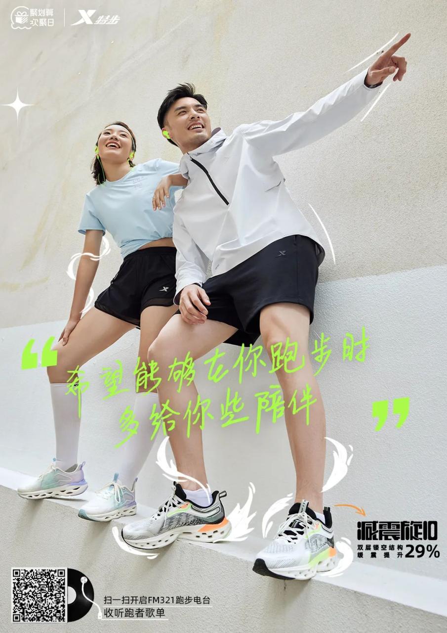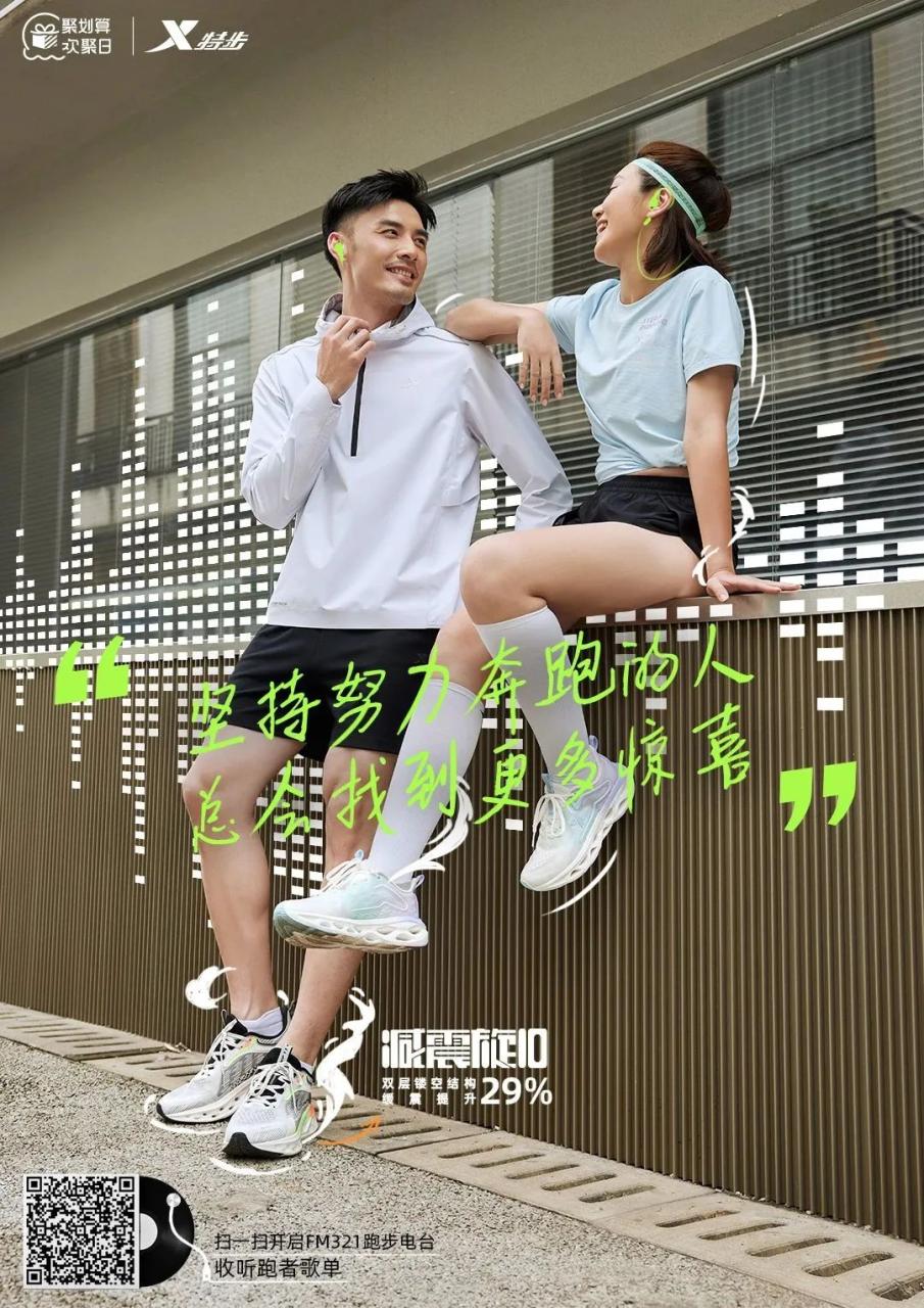 与此同时,特步还与QQ音乐合作推出了“FM321跑步电台”。跑步电台为跑者独家准备了城市跑、海边跑、街头跑等不同场景下的推荐歌单。还有马拉松冠军跑者、品牌代言人范丞丞以及王鹤棣在电台内分享自己的跑步心情,并陪伴跑者一起探索跑步的快乐。