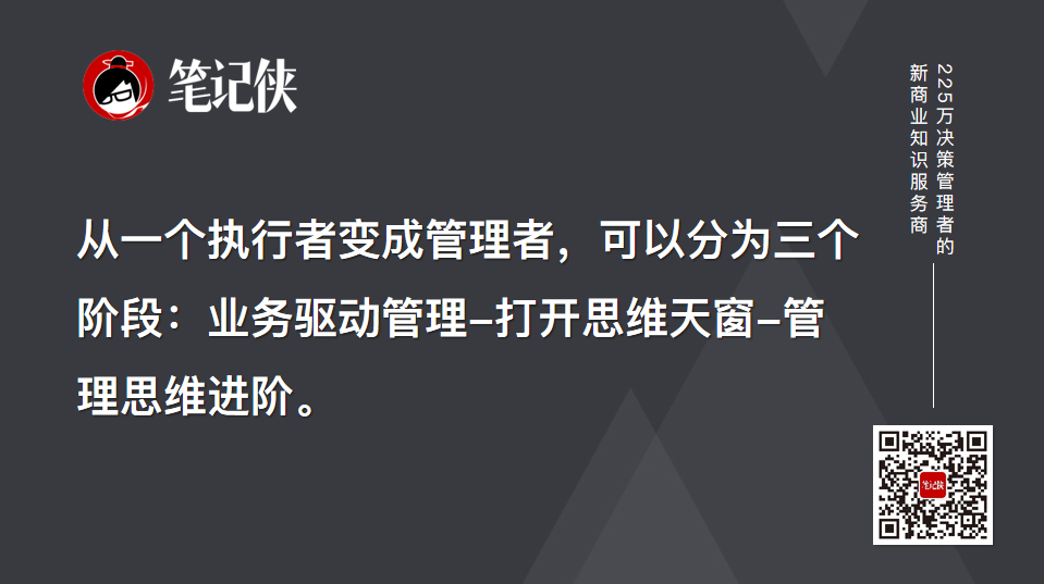 但从一个执行者变成管理者,一定是要拥有更高、更全面的管理能力,包括指挥作战和驾驭全局的能力。
