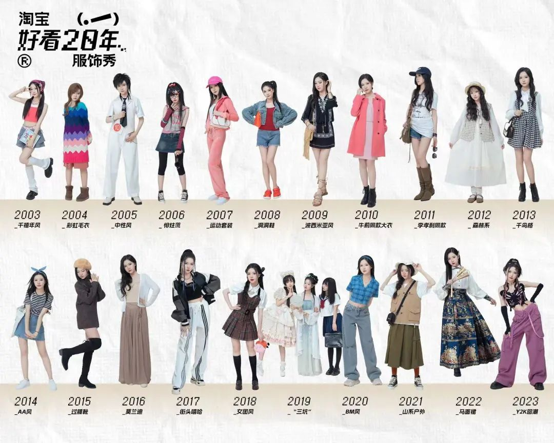 “韩剧同款”、“非主流”、“汉服”“、马面裙”、“Y2K回潮”……淘宝联合北京服装学院共同评选出的这20套服装造型,不仅个个都是带有浓烈时代烙印的销量爆款,更为我们串联起了一部国人审美的跃迁简史。