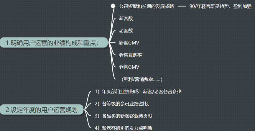 1.明确公司或部门的业绩构成和重点,并设定年度的用户运营规划;