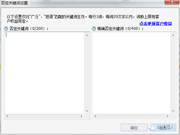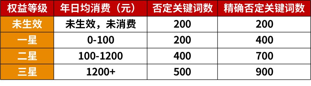 以一星权益账户来说,每个计划可以添加否定关键词200个,精确否定关键词400个;每个单元同样可以添加否定关键词200个,精确否定关键词400个。