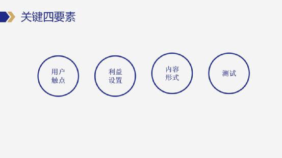 但事实上,这四个要点,不仅仅是运用在引流,在用户留存环节,像用户激活、互动、包括用户转化等等,都能有所运用。这四个关键要素,可以说是贯穿整个私域营销过程的。