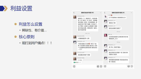 举个很简单的例子,之前一家宠物机构,他在做用户引流的时候,是说,只要用户进入到他的这个社群,就可以提供一次免费的宠物问诊。那这种方式最终的效果,远比简单粗暴的送一袋猫粮、狗粮来的更能打动用户。