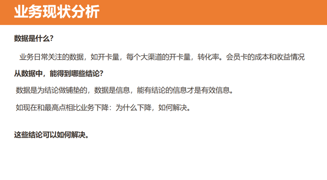 要想最终进行目标拆解,在此之前需要做一项关键任务:对自己的业务进行现状分析。从现状中找到发现问题,才能根据问题制定一个可以落地,并且是能够突破现有业务现状的目标。