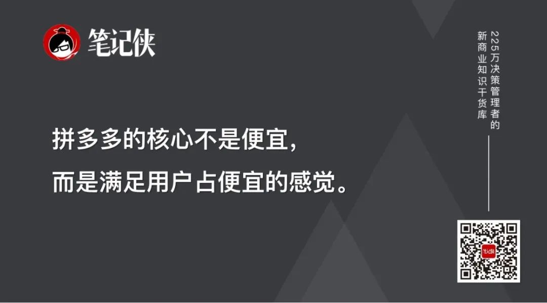 低价只是拼多多阶段性获取用户的方式,拼多多对性价比的理解是“始终在消费者的期待之外”,拼多多的核心不是便宜,而是满足用户占便宜的感觉。