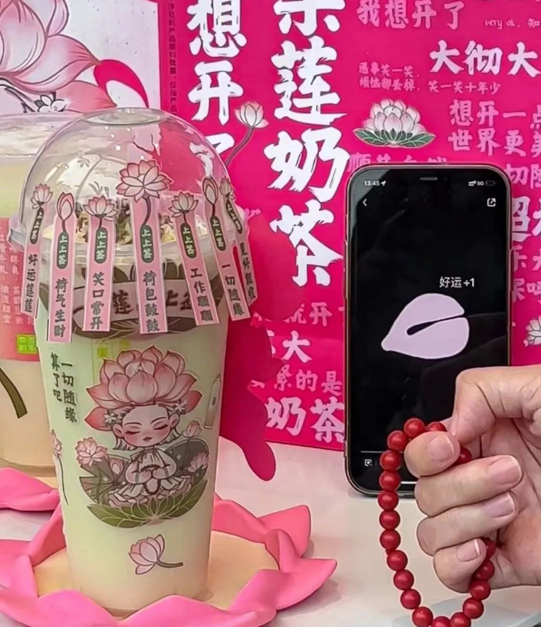 不仅契合了年轻人希望求来好运、财运亨通的心理需求,先贴符再品尝的新颖方式,更是将喝奶茶的仪式感直接拉满。如此操作下来,仿佛这已经不再是普普通通的奶茶,而是能实现愿望的阿拉丁神灯了。