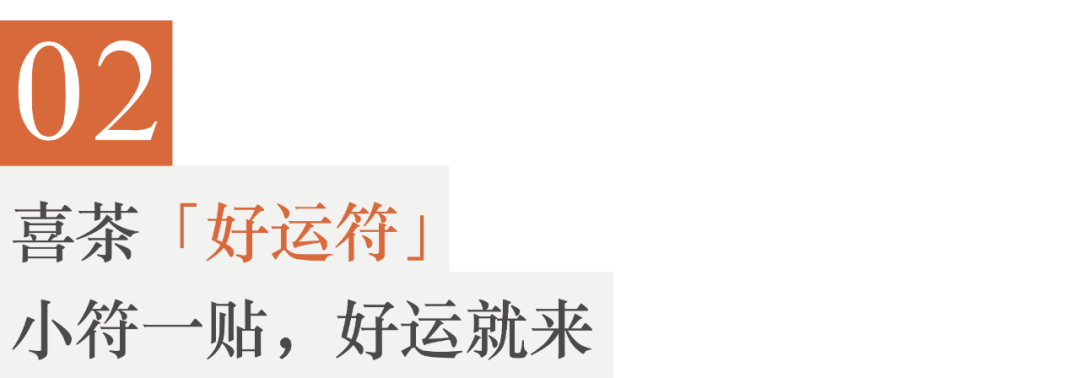 “符”,是道教里特有的文化,相传蕴含着神秘力量。喜茶瞅中“符”这一玄学特质,大手一挥制作了“好运符”“财运符”“事业符”“桃花符”四款符,将其贴在了新品豆豆波波奶茶杯身上。