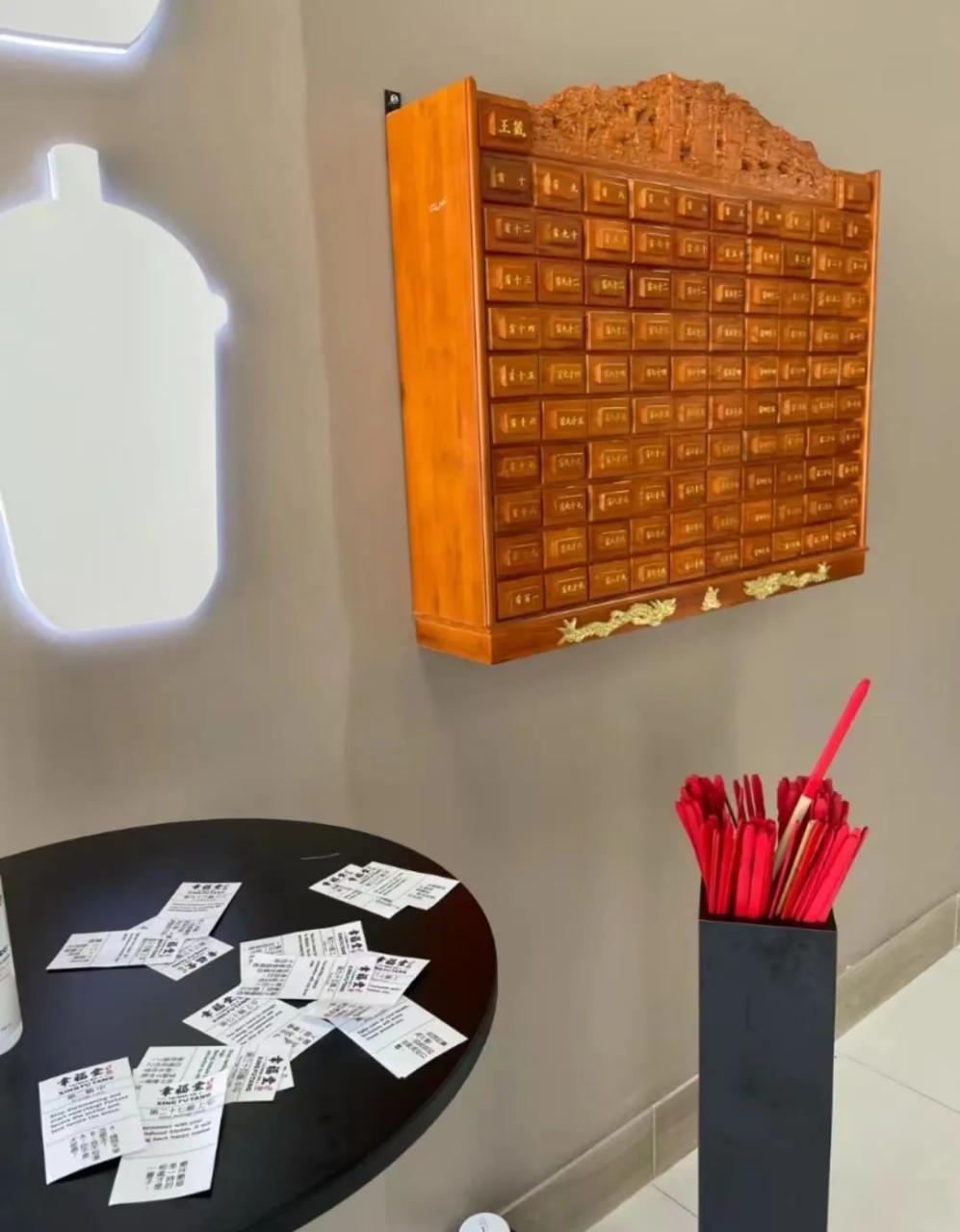 寺庙里带有玄学色彩的抽签算命方式,被幸福堂搬到了店里,改成了新奇有趣的互动玩法。用户只要购买奶茶参与抽签,并按照数字找到对应墙壁上小盒子里的纸条,就能查看自己的运势。