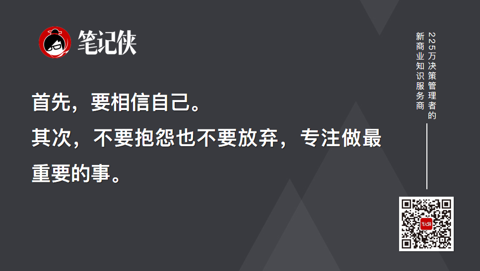 其次,不要抱怨也不要放弃,专注做最重要的事。