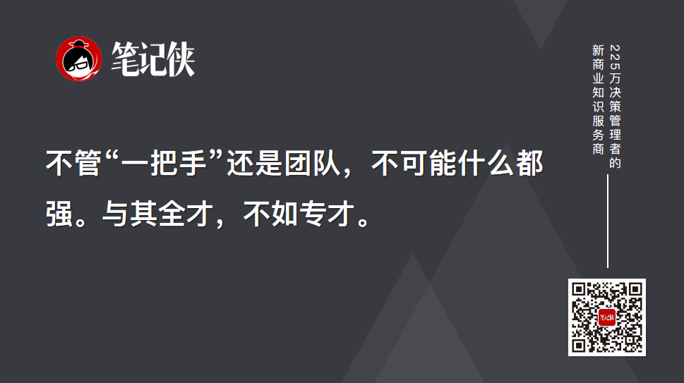 不管“一把手”还是团队,不可能什么都强。与其全才,不如专才。