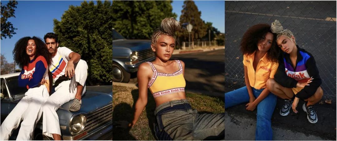 在去年,柯达分别与两大快时尚品牌 H&M 和 Forever 21 推出了联名服饰,让你把柯达“穿在身上”。虽然百年老店已经没落,但醒目的 logo,经典的配色一出现,还是让人过目不忘。