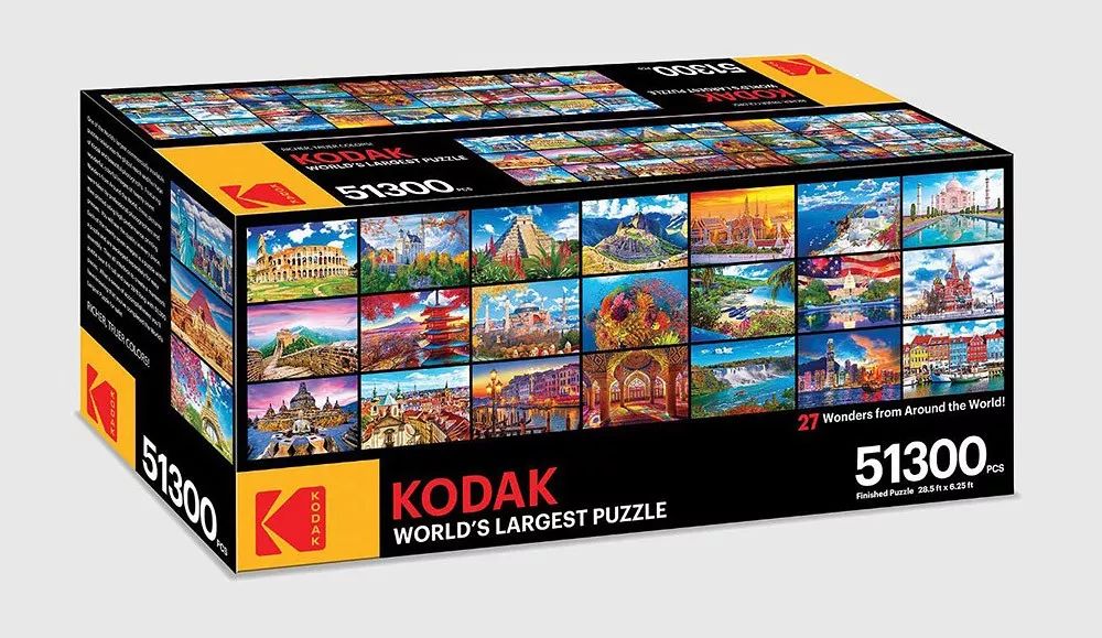 到了今年,柯达和儿童玩具品牌 Cra-Z-Art 合作开发了世界上最大的一个拼图,一共有 51300 块拼图,里面 27 组拼图分别对应全世界 27 个知名地标建筑。