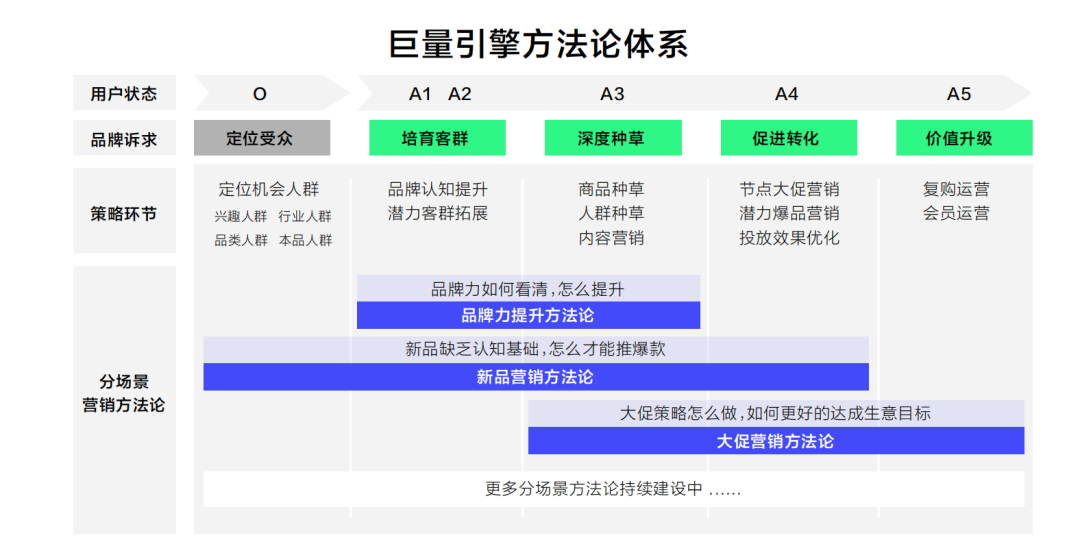 总结以上,巨量引擎方法论体系手册直观来看是在给“拿来就用”的一体化方案,但其实隐藏其中的也是一种由浅入深、由核心到全局的营销思路——