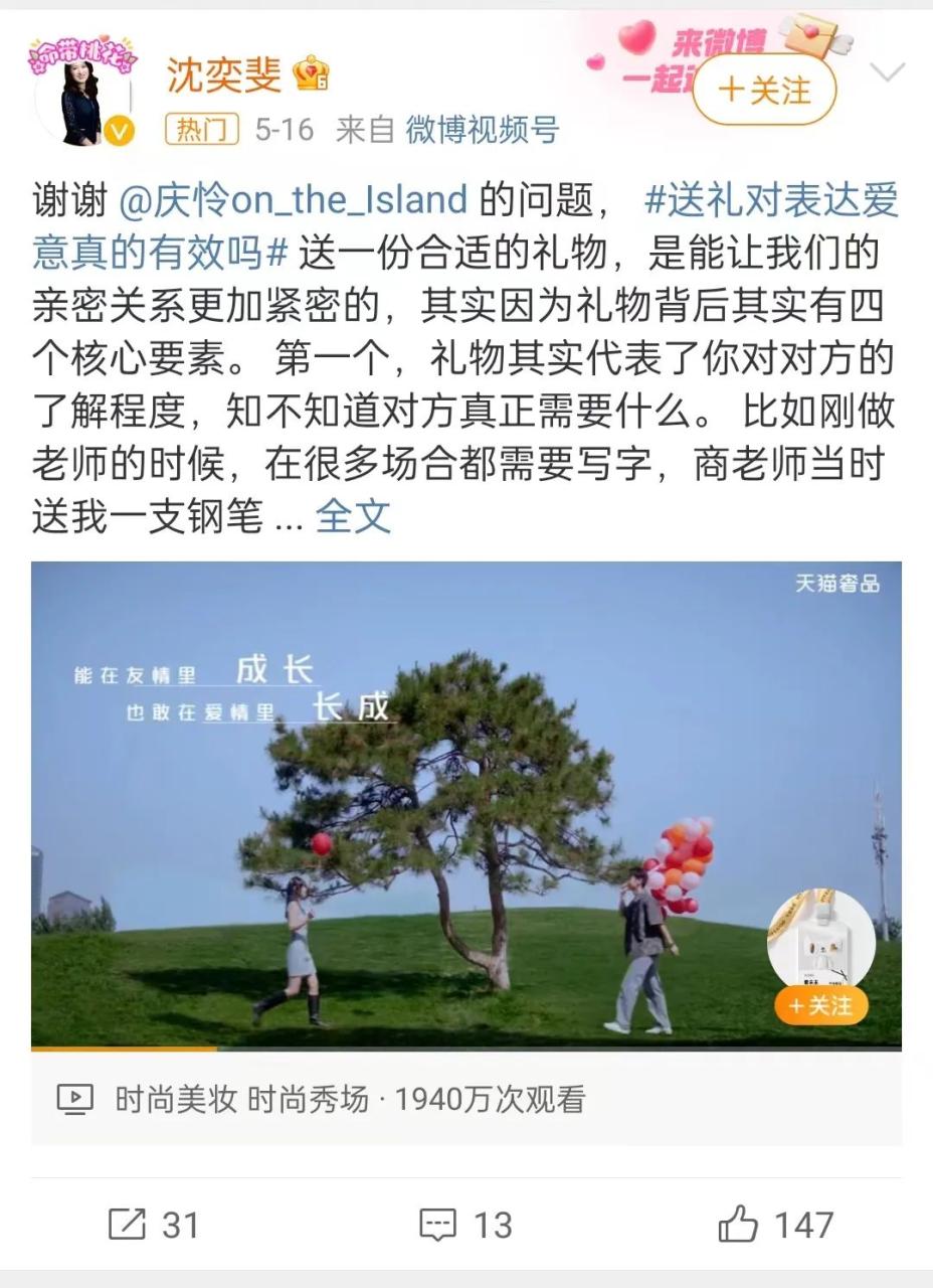 洞察到很多人还在为给伴侣送礼物而苦恼,或者怀疑礼物对表达爱意的价值和作用,天猫奢品 x 新世相一起邀请复旦社会学教授@沈奕斐和青年歌手@庆怜开启【#送礼对表达爱意真的有效吗#】特别活动,解答心意礼的作用。