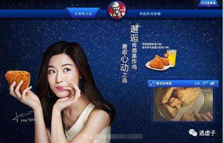 如果肯德基只是告诉你可以“填饱肚子”相信大多数人都会无动于衷,比如下面这个肯德基的广告就是通过全智贤这样的美女吮吸手指来刺激人的味蕾并最终产生消费欲望。美食+美女,我想大多数人不会拒绝。