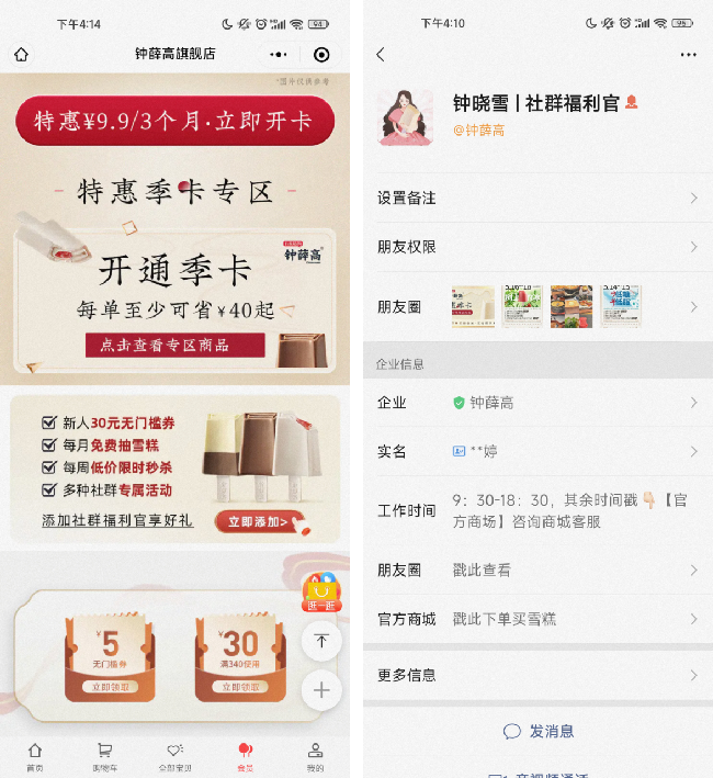 和大多数新消费品牌一样,疯狂增长的销售额背后,钟薛高也在私域下足了功夫。