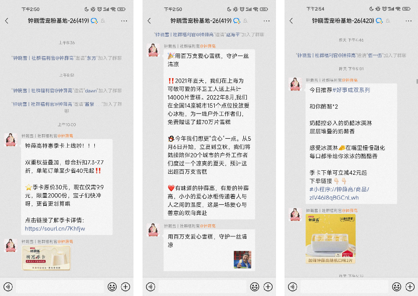 社群是私域中促活最有效也是最常见的场景,钟薛高通过社群的运营,增加产品的曝光和转化。下面进行详细拆解: