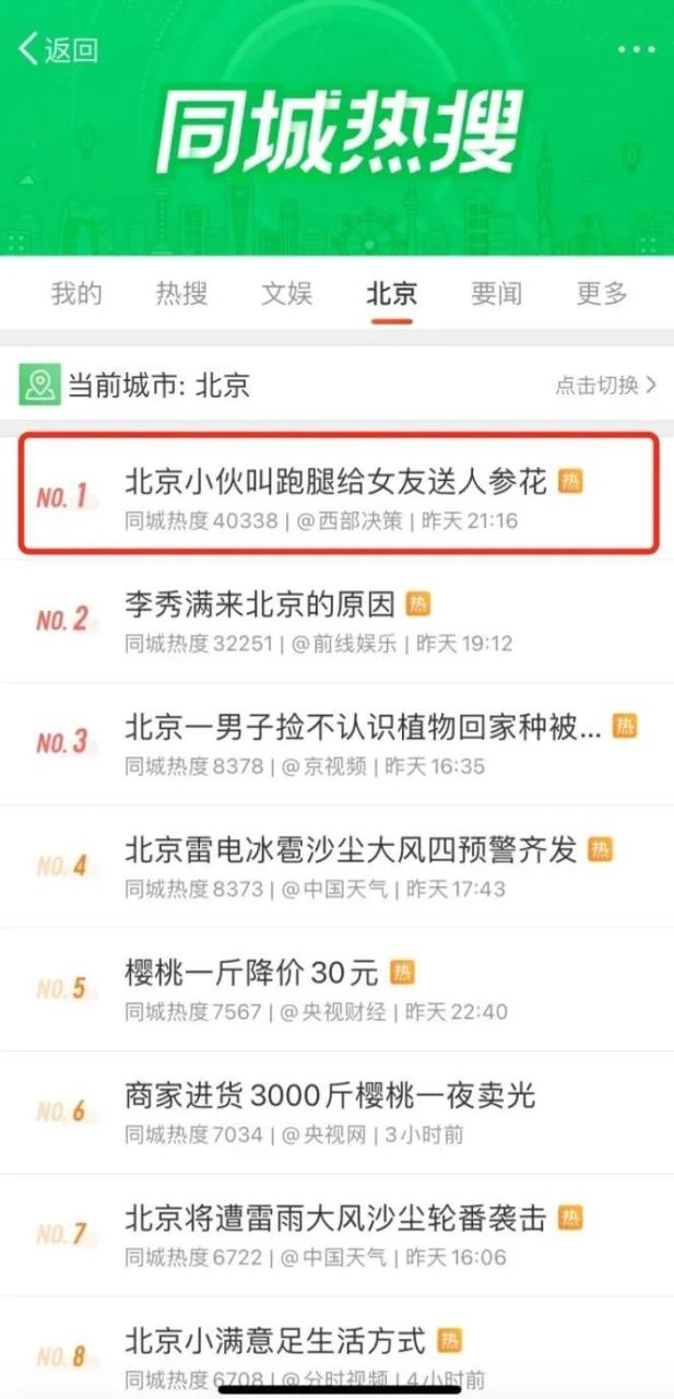 而原本我以为,这差不多就是美团跑腿脑洞的极限了,直到我又看到了这样的一条同城热搜: