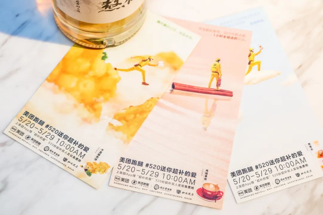 尤其是作为一个便民服务类的产品,美团跑腿在520这样的节日中本身的存在感是很低的,用户可能也不曾想到,一个便民服务类产品竟出人意料地也能送超补的爱表达情感和爱意。这样的反差感,很容易让用户将美团跑腿的营销与其他品牌区分开来。