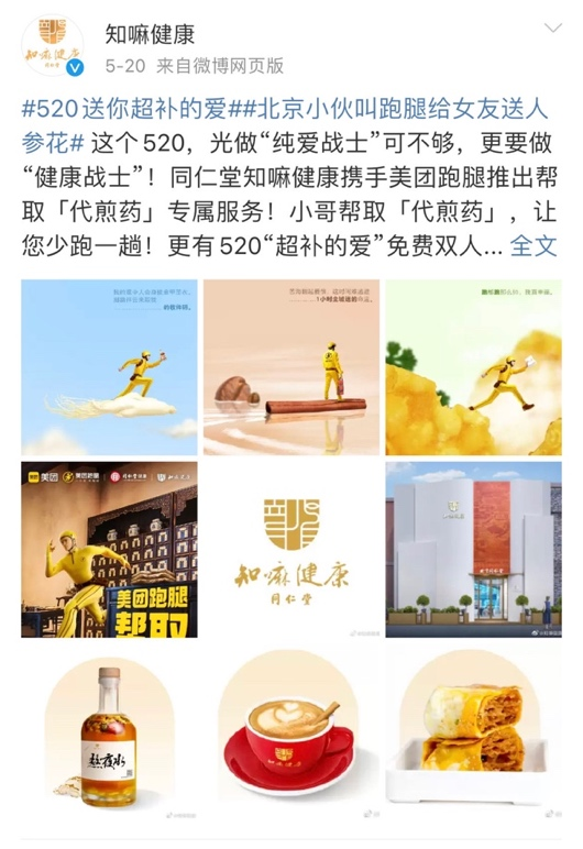 另一方面,在兵法先生看来,无论是大众对520跨界营销的麻木,还是品牌自身的同质化烦恼,归根到底往往还是太注重节日,而忽略了用户的需求和对于自身产品的使用场景。而美团跑腿X同仁堂知嘛健康最大的不同就在于,“520送你超补的爱”追的不只是节日,更有着对用户愈发重视中式养生调理的需求和痛点的洞察。