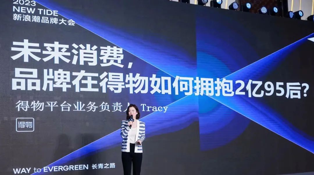 会上,得物App平台业务负责人Tracy发表了以《掘金未来消费,品牌在得物如何拥抱2亿95后?》为主题的重磅演讲。