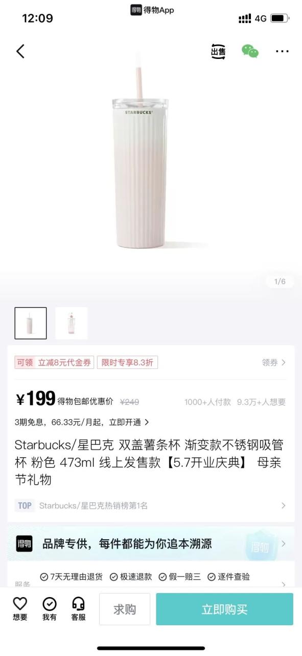 5月7日,在官方入驻得物App的基础上,星巴克中国在得物上线了多款品牌专供的水杯产品,其中新品粉色渐变薯条杯更是在得物首发。这款新品粉色渐变薯条杯一经上线,便收获近10万年轻人关注,并迅速登顶星巴克热销榜第1名。