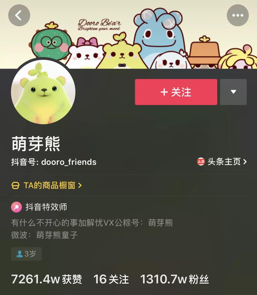 另一个在抖音上流量巨大的形象IP萌芽熊在还没有做抖音视频之前,整个2017年一直都在做一些调整,但据相关负责人介绍,这些调整并未得到市场认可。不过在2018年年终之后,萌芽熊在抖音上获得了一个很高的排名,也因此得到了更为广泛的关注。