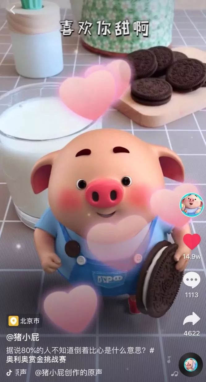 和一般IP不同,作为抖音的原生IP,2017年11月,凭借着在抖音活动#俄舞挑战#中拍摄的一条短视频,憨态可掬、长相可爱的猪小屁一战成名。它采用真人实拍+3D虚拟形象相结合的创作模式,演绎着人和猪之间温馨搞笑的生活日常。目前,猪小屁已在抖音上创作多条点赞破百万的内容,如原声视频《生个妹妹篇》截至5月6日,点赞量达到259w。