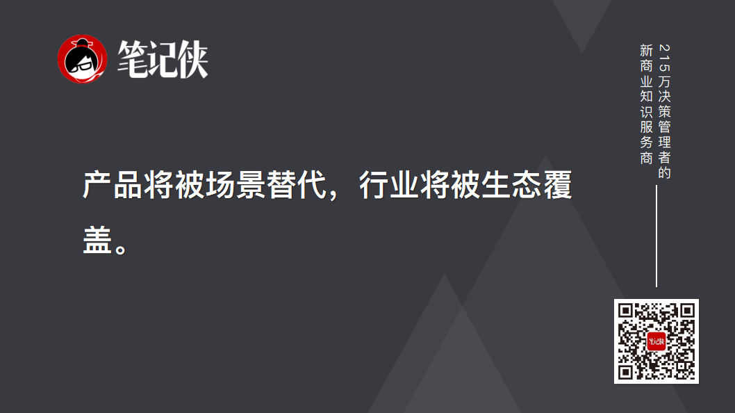 比如海尔。张瑞敏说,产品将被场景替代,行业将被生态覆盖。