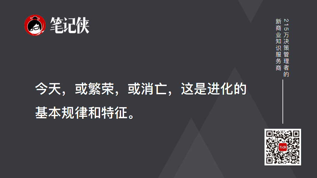 身处间断平衡的进化模式中,恐怕我们不得不告诉自己,不做数字化转型,也许真的要消亡;做数字化转型,就有机会进入繁荣的阶段。