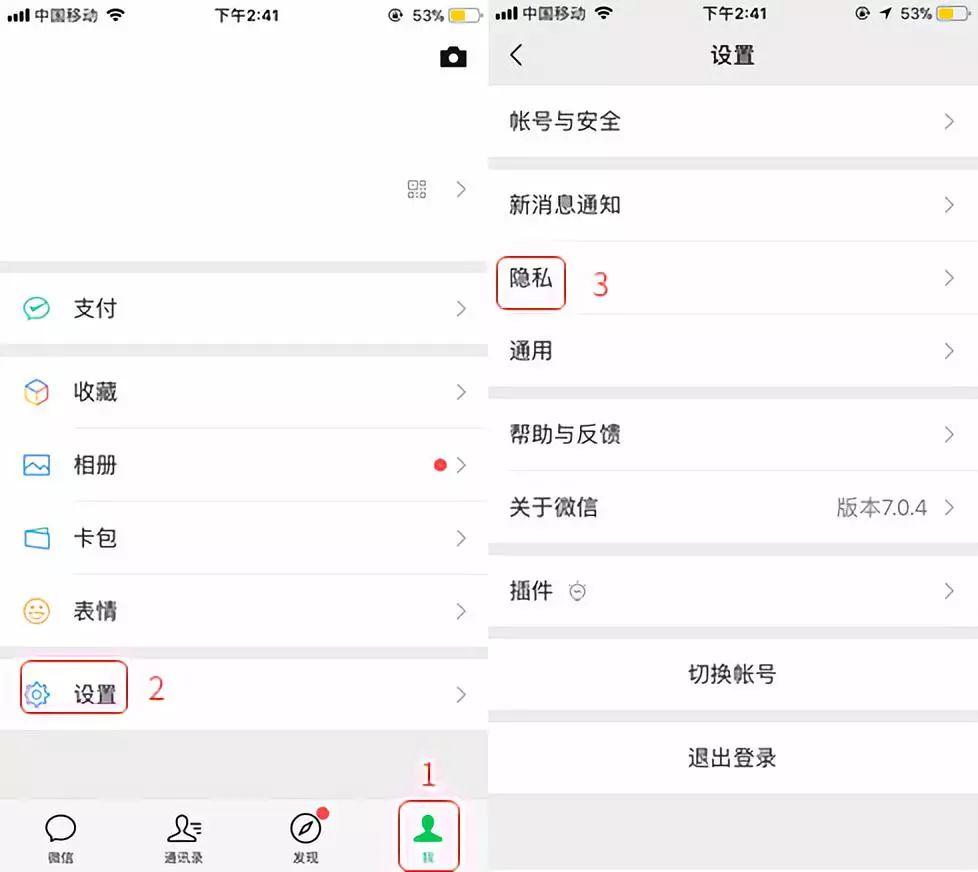 打开微信,找到「我」-「设置」-「隐私」