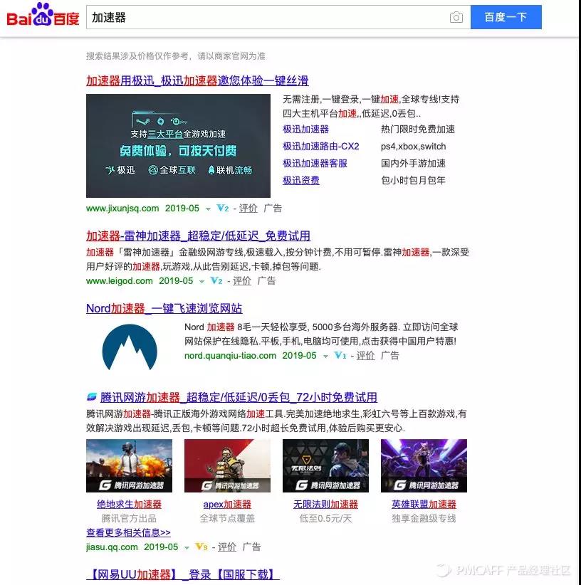 端游市场第一梯队的产品深耕加速器多年,且SKU品类扩展稳定,具备足够的资源及品牌优势,广告覆盖范围以百度、斗鱼为主要流量地。