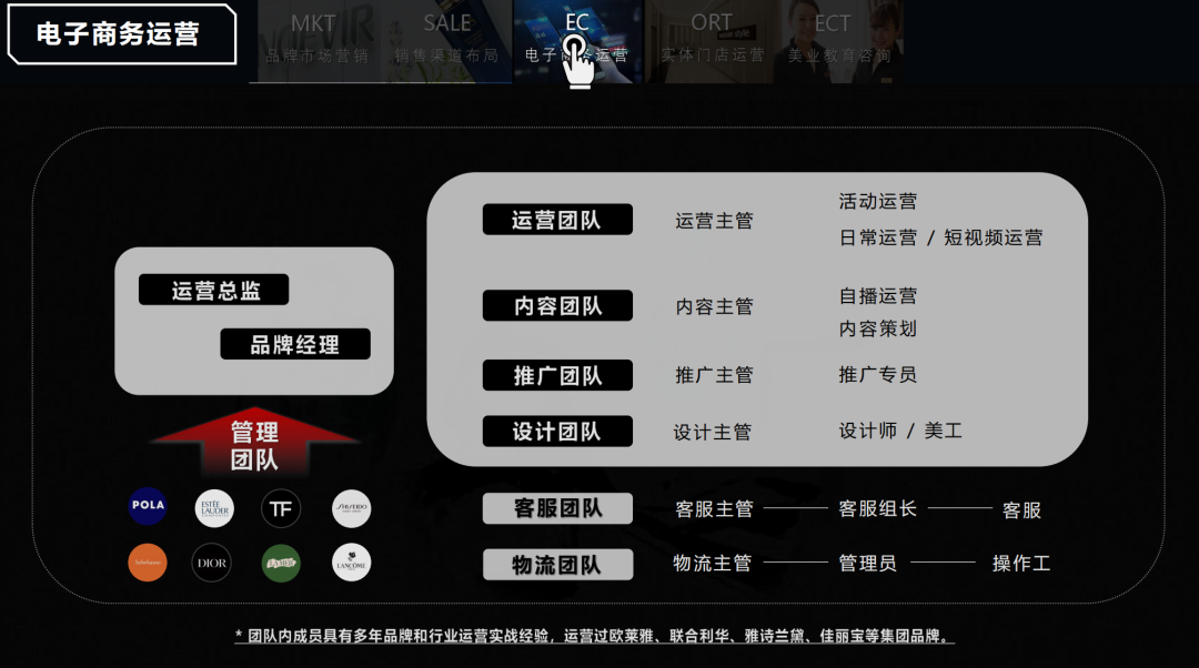 四是EC电商部门,专门做线上的像天猫、抖音的官方旗舰店。