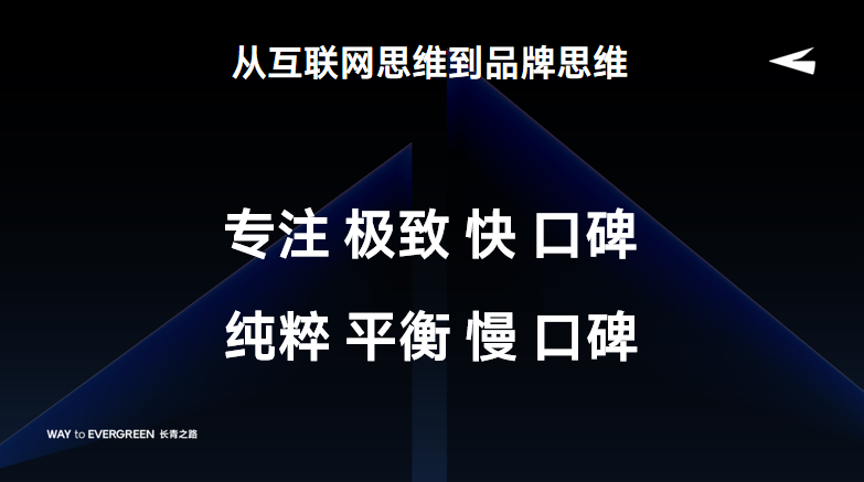 互联网思维和品牌思维不能说截然不同,但一定是two ways to go。互联网讲究“专注、极致、快、口碑”,而消费品需要“纯粹、平衡、慢、口碑”,其中只有口碑这件事是一致的。