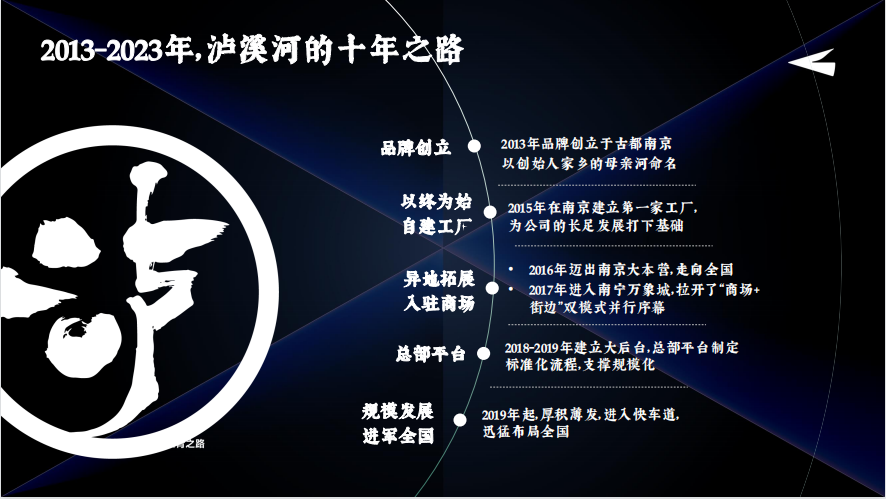除此之外,包括我们的单店盈利水平、管理水平、开店速度,以及人才管理、信息化和渠道拓展速度,这些能力都需要泸溪河持之以恒地去提升和改进。