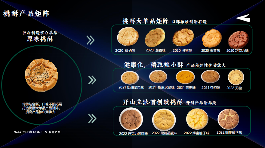 比如我们推出了杂粮、无糖的桃酥,在健康化的同时丰富产品的口感和味道,创新性地推出了软桃酥这一新品类。并且在原有经典口味的基础上推陈出新,用椰奶、核桃、蛋黄等新口味丰富产品体系。