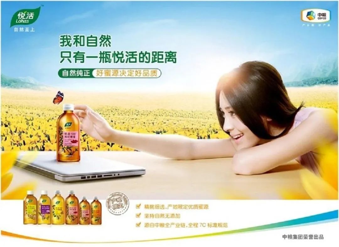 在这一波传播赢得消费者的认知,打响中粮的名头之后,企业品牌的传播就隐于产品品牌背后,只出现在产品广告的边边角上。比如福临门、悦活的广告中都会固定出现中粮的信息。