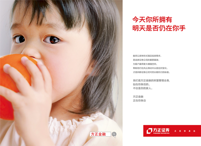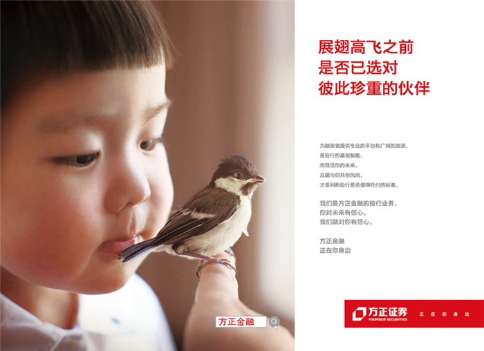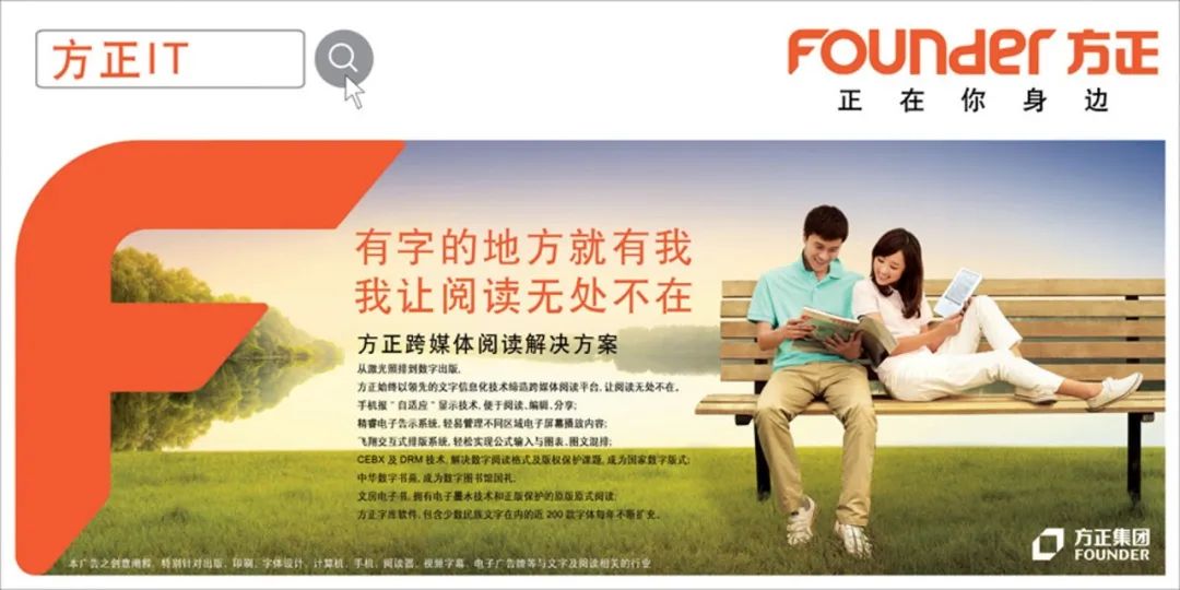 方正集团的传播也是如此,在各个业务品牌如方正IT、方正金融的传播中,会出现统一的方正元素,强化企业品牌识别,共同宣传方正集团品牌的理念“正在你身边”。