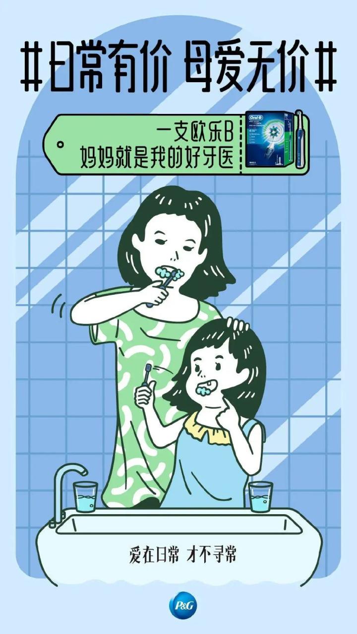 这一波传播中也融入了产品品牌,妈妈在家里从事的各种职业都与宝洁旗下各品牌有关,比如“一瓶海飞丝,妈妈做我的发型师”、“一支欧乐B,妈妈就是我的好牙医”等等。