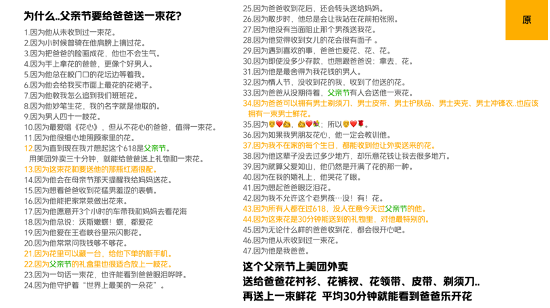 于是我们的文案同学马上给出了一百个送爸爸花的理由