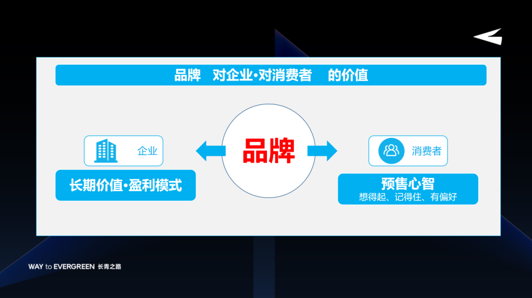 第一,在消费者层面,品牌必须能吸引到用户购买,品牌的最终价值一定是能够形成预售心智。
