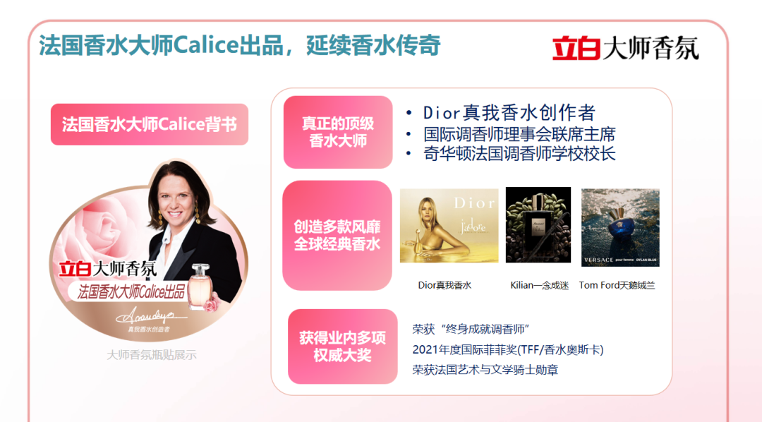 如果品牌名是“大师香氛”,就一定要去请一个大师来调香。所以“立白大师香氛”自然需要去找到一个国际调香大师,去跟产品匹配起来。
