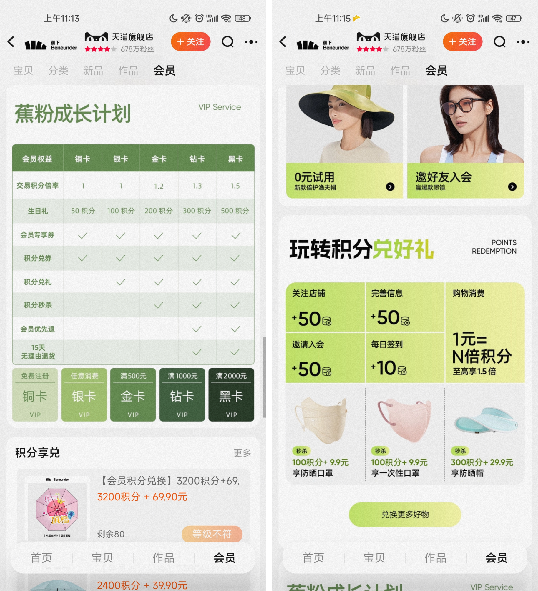 蕉下在微信小程序和电商平台都设置了会员体系,具体以成长会员+积分体系为主,下面分平台进行详细拆解。